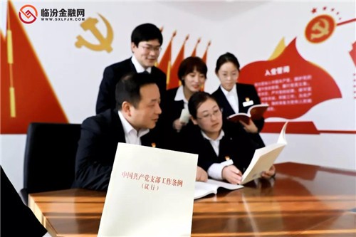 臨汾金融網(wǎng)訊 浮山農(nóng)商銀行全體黨員集中學(xué)習(xí)《中國(guó)共產(chǎn)黨支部工作條例(試行)》。