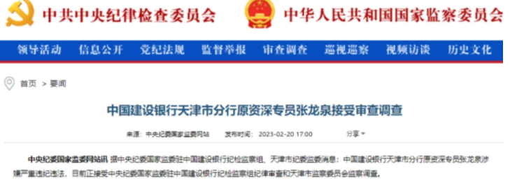 據(jù)中央紀(jì)委國家監(jiān)委駐中國建設(shè)銀行紀(jì)檢監(jiān)察組、天津市紀(jì)委監(jiān)委消息:中國建設(shè)銀行天津市分行原資深專員張龍泉涉嫌嚴(yán)重違紀(jì)違法,目前正接受中央紀(jì)委國家監(jiān)委駐中國建設(shè)銀行紀(jì)檢監(jiān)察組紀(jì)律審查和天津市監(jiān)察委員會(huì)監(jiān)察調(diào)查。 今年以來,建行系統(tǒng)已有多名干部“落馬”。2月15日消息,建設(shè)銀行酒泉分行原行長張森被提起公訴。甘肅省酒泉市人民檢察院公眾號(hào)“酒泉檢察”發(fā)布消息稱,日前,中國建設(shè)銀行酒泉分行原黨委書記、行長張森涉嫌受賄罪、違法發(fā)放貸款罪、違規(guī)出具金融票證罪一案,經(jīng)酒泉市人民檢察院交辦由肅州區(qū)人民檢察院依法向肅州區(qū)人民法院提起公訴。 2月9日,據(jù)青島市人民檢察院消息,中國建設(shè)銀行股份有限公司研修中心華南研修院原副院長、資深副經(jīng)理李保奇涉嫌受賄罪一案,由青島市人民檢察院依法向青島市中級(jí)人民法院提起公訴。據(jù)指控,被告人李保奇利用職務(wù)上的便利,為他人謀取利益,非法收受他人財(cái)物,數(shù)額特別巨大,依法應(yīng)當(dāng)以受賄罪追究其刑事責(zé)任。 2月1日,據(jù)中央紀(jì)委國家監(jiān)委駐中國建設(shè)銀行紀(jì)檢監(jiān)察組、山東省紀(jì)委監(jiān)委消息,日前,經(jīng)中央紀(jì)委國家監(jiān)委批準(zhǔn),中央紀(jì)委國家監(jiān)委駐中國建設(shè)銀行紀(jì)檢監(jiān)察組、山東省青島市紀(jì)委監(jiān)委對(duì)中國建設(shè)銀行深圳市分行原黨委書記、行長王業(yè)嚴(yán)重違紀(jì)違法問題進(jìn)行了紀(jì)律審查和監(jiān)察調(diào)查。 今年1月份,中國建設(shè)銀行機(jī)構(gòu)業(yè)務(wù)部原總經(jīng)理黃曦因涉嫌受賄一案,經(jīng)吉林省人民檢察院指定管轄,由白城市人民檢察院依法向白城市中級(jí)人民法院提起公訴。 |