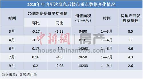 2015年年內(nèi)歷次降息后樓市重點(diǎn)數(shù)據(jù)變化情況 自去年11月以來,央行降息降準(zhǔn)的節(jié)奏顯著加快。10月23日,央行再次宣布降息降準(zhǔn),分別下調(diào)了0.25個(gè)百分點(diǎn)和0.5個(gè)百分點(diǎn),這已是自去年以來的第6次降息、降準(zhǔn),單單是今年年內(nèi)就有5次之多。這對于買房人來說,無疑是一大利好。據(jù)估算,經(jīng)過年內(nèi)5次連續(xù)降息,購房者百萬房貸20年總計(jì)可少繳利息近17萬元。
